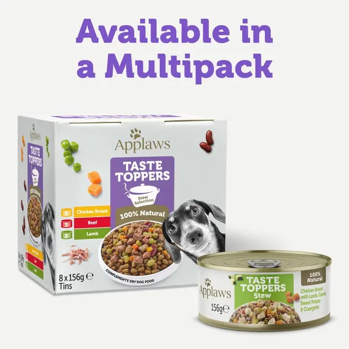 From the first munch to the last crunch, your dog will love our Stew Toppers on their favourite dry dog food – almost as much as they love you. It’s easy to see why when you pour over chunks of chicken breast, tender lamb and lamb’s liver, with lots of chopped vegetables.
