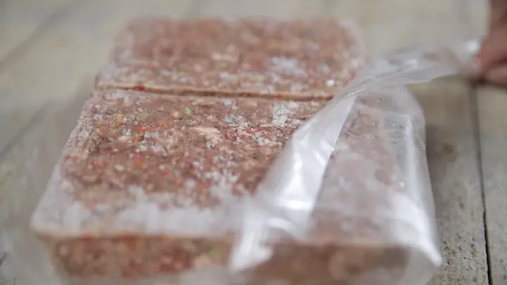 Defrost, mix together and ready. Do not cook or fry. Give your dog preferably 2 meals a day and puppies 4 meals a day.