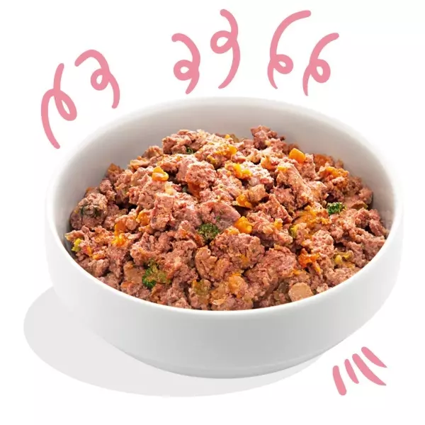 The recipe contains prebiotics for a healthy gut, and we add extracts of glucosamine and chondroitin for strong joints. As a bonus, we combine the meat with nutritious offal (like heart and liver) for an extra helping of nutrition.
