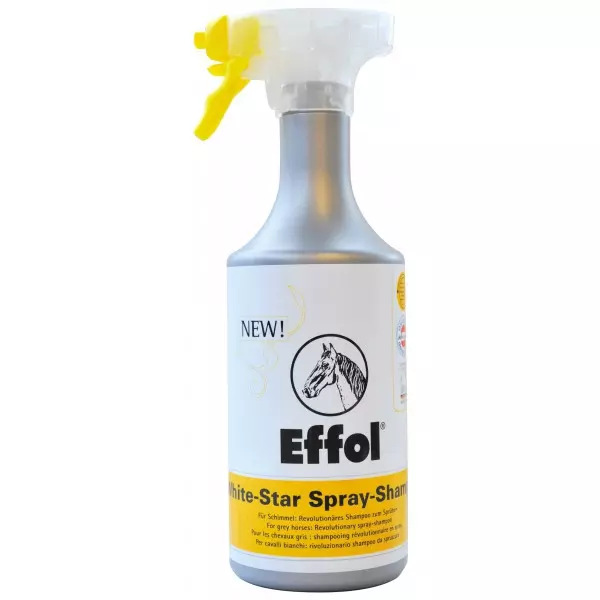 Effol White Star Spray Shampoo will make every grey and light horse beautifully clean again because it tackles even the most stubborn of dirty marks. The high quality formula also contains special additives which neutralise the yellow tint for a bright and clean coat. Contains extracts of chamomile blossom which help to strengthen the protective function of the skin, while panthenol makes the skin and coat smooth and shiny.