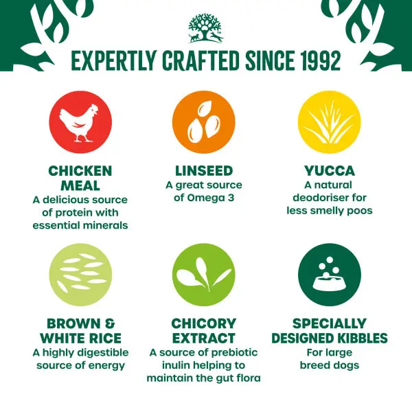 We’ve taken a handful of nature’s nourishing ingredients and combined them with flavourful chicken for highly digestible, quality protein dog food. Then, using all our knowledge and experience, we’ve added all the vitamins and minerals your pet needs to stay happy, healthy and full of life.