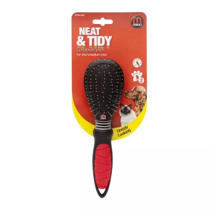 Mikki Combi Brush is an effective grooming product designed for short and medium length coats. The brush itself comprises standard length nickel brushing pins, mounted on an air cushion for gentle brushing.