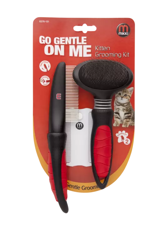 The Mikki Kitten Grooming Kit is a grooming starter kit for new kitten owners. Includes a flea comb slicka & comb to help young animals to being groomed. Also available in Easy Grooming, which comes with more comfortable handles.