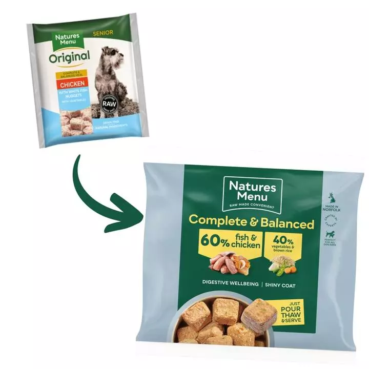 Our nuggets are so convenient, because we’re on a mission to bring the most natural, nutritious and unprocessed dog food, in the easiest way possible for you. It’s all about worry-free natural feeding for us!These easy to serve chicken and fish dog food nuggets need simply to be poured out, thawed then served, for a mess-free meal time that you and your dog will love.