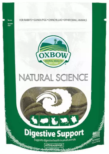 Natural Science Digestive Support from Oxbow is a high-fiber supplement containing various herbal ingredients which support the digestive health of your pet. Chicory Root supports the growth of beneficial bacteria in the GI tract while Ginger Root supports gastric motility. Slippery Elm supports overall digestive function.