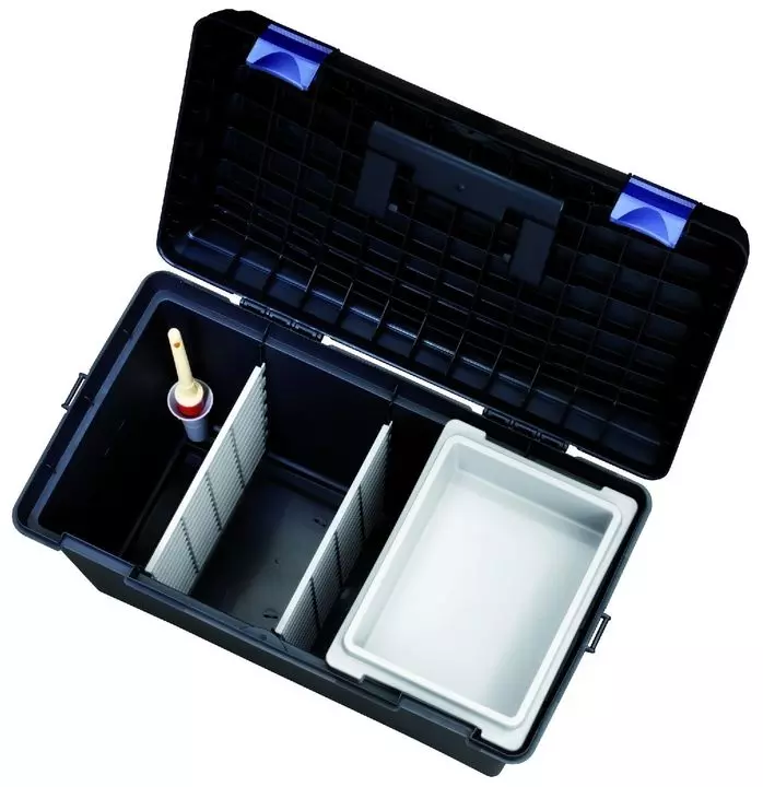 A high specification polypropylene grooming box with one movable tray and two internal partitions. Hoof oil brush holder keeps everything nice and clean. Dimensions (mm): 515x287x338(h).