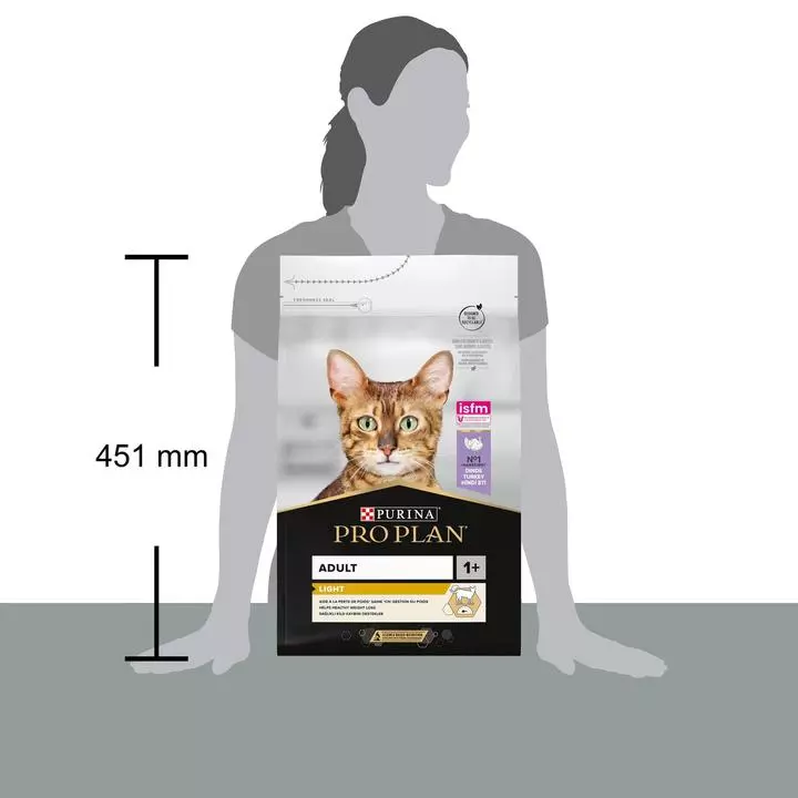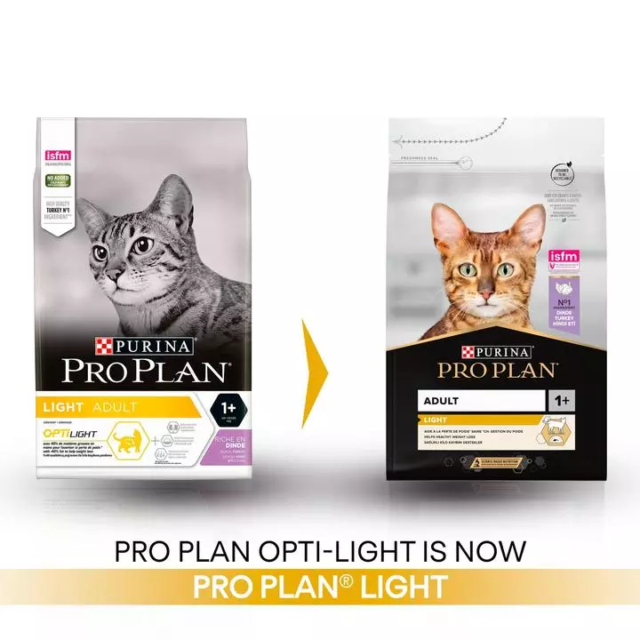 PRO PLAN Light contains a specific combination of ingredients which is scientifically designed to make a difference to cats’ long-term health. PRO PLAN LIGHT combines OPTI-LIGHT with all essential nutrients and extra dietary fibre in a low fat diet for overweight adult cats and those with a tendency to put on weight.