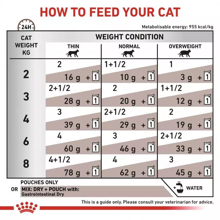 Royal Canin Gastro-Intestinal GI 32 is a complete food for adult cats with acute intestinal absorption disorders. It can be used in cases of chronic and acute diarrhoea, inflammatory bowel disease (IBD), malabsorption, maldigestion, convalescence, gastritis, colitis, anorexia, bacterial overgrowth and cholangiohepatitis. It has been specially developed to ensure that digestive health is restored and to encourage nutritional restoration and convalescence.
