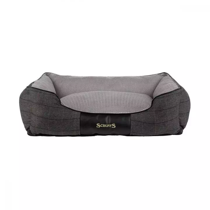 The Scruffs® Windsor collection is themed around two timeless colourways, in keeping with home decor trends. The beds are upholstered with a rich tweed outer sidewall, combined with contrasting chenille lining. A faux leather centre patch with embroidered Scruffs logo and faux leather piping complete the beds detailing. Each bed has a non-slip base and is machine washable. The box dog bed is made using a one-piece construction providing greater support and enhanced durability during washing.