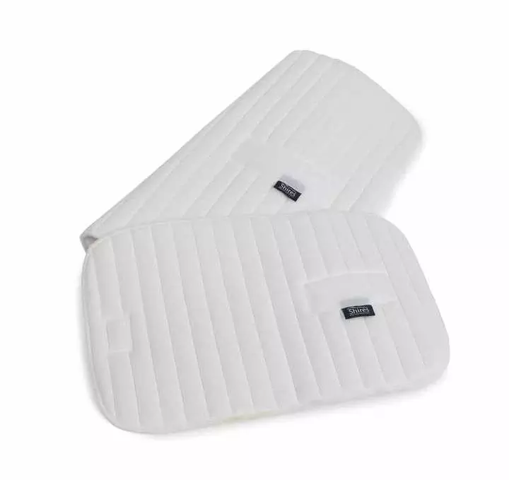 Offering extra protection, these cushioned pads also help prevent pressure points under bandages. The touch close tab keeps the pad in place whilst bandaging. Moisture is wicked away by the soft, towelling lining. Available in two sizes to fit varying leg lengths. Set of 4. Small: 28cm x 40cm (11″ x 16″), Large: 45cm x 45cm (18″ x 18″).