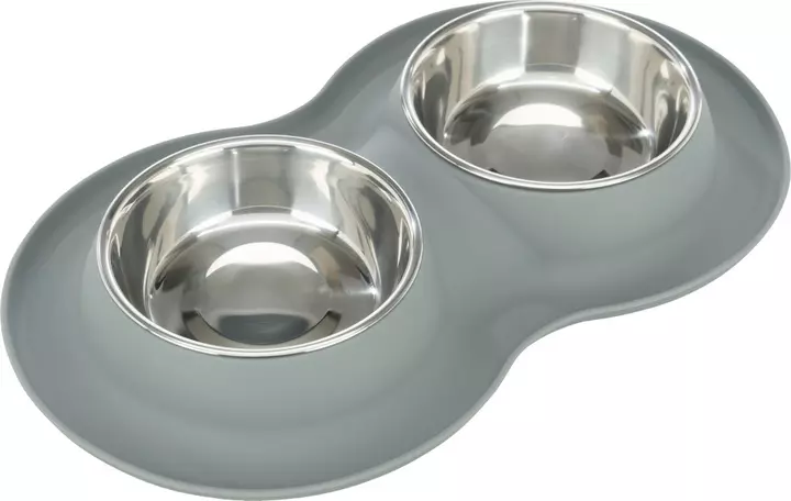 2 stainless steel bowls with stand