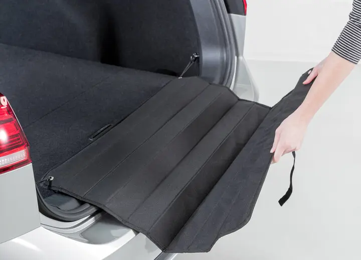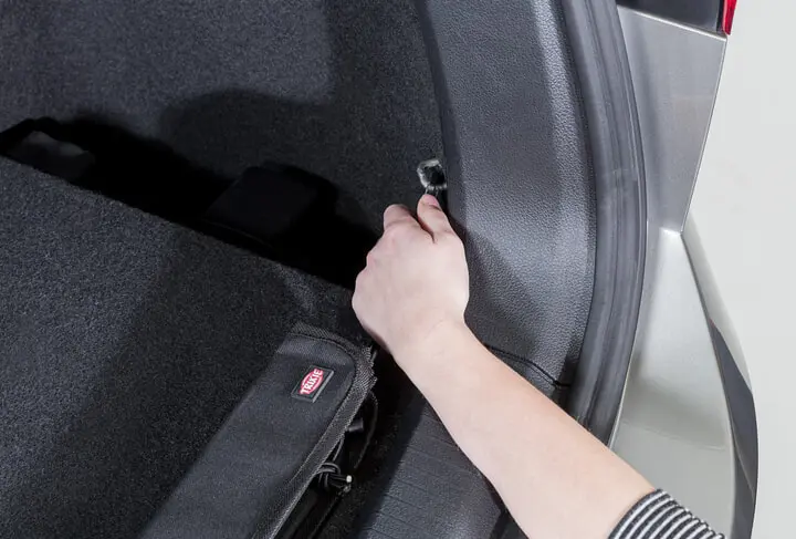 With elastic bands and snap hooks for easy attachment to the floor hooks in the car boot.