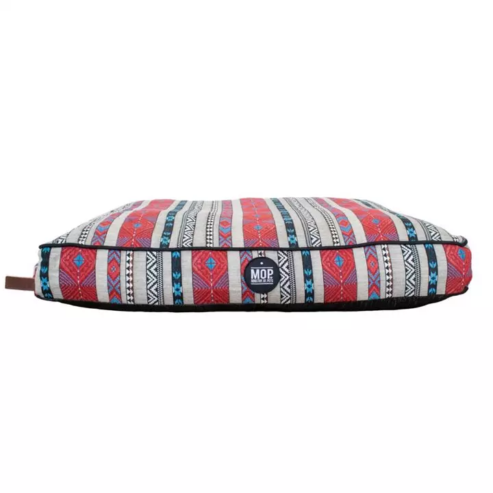 With its striking Aztec design fabric, the Ministry Of Pets Aztec Mattress Bed is a real statement piece for your pet. With a generously filled cushion for ultimate comfort, the cool faux linen lining will help to regulate your pet’s temperature as they snooze. Stylish finishing touches such as coordinated piping, faux leather “Made in the UK” tag, and branded Ministry Of Pets badge on the front panel make the Aztec Sofa Bed really stand out from the crowd.The Mattress Bed is fully machine washable, and for convenience features a removable cover for when only a quick freshen up is required. With the addition of a non-slip base, the Aztec Mattress Bed offers practicality as ell as style.