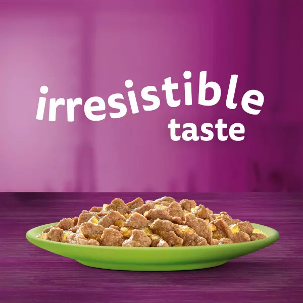- Meat and Animal Derivatives (35%, including 4% Beef in the Chunk*), Cereals, Minerals, Derivatives of Vegetable Origin, Various Sugars, *Chunk typically 40% of product